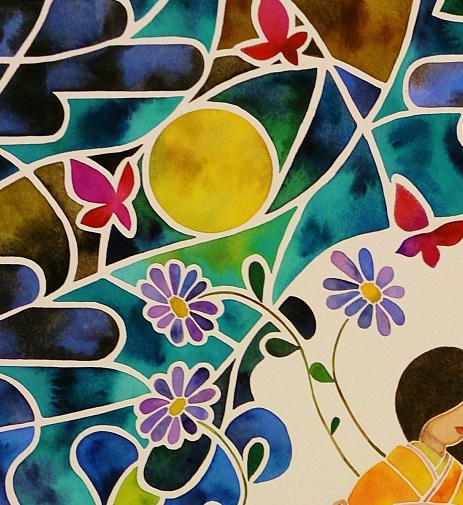 「月」と「青い菊」、私の好きなものを合わせた絵を制作中。